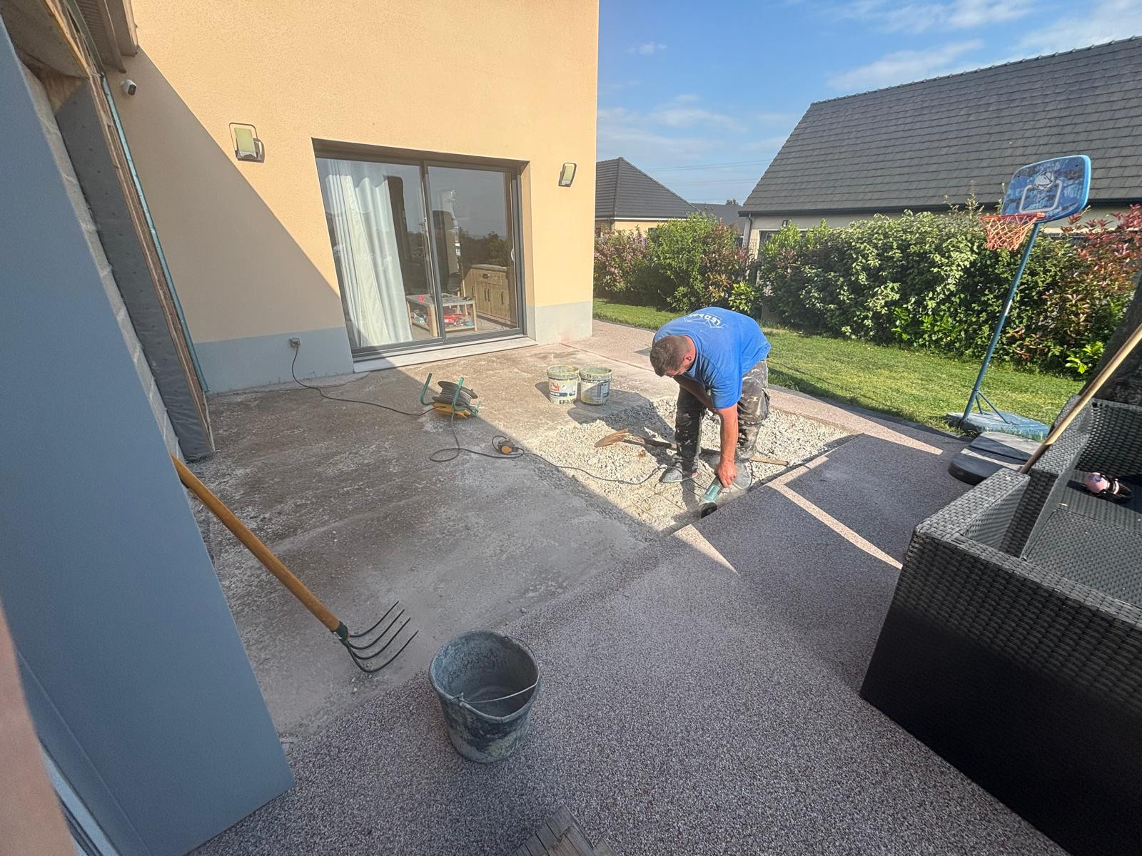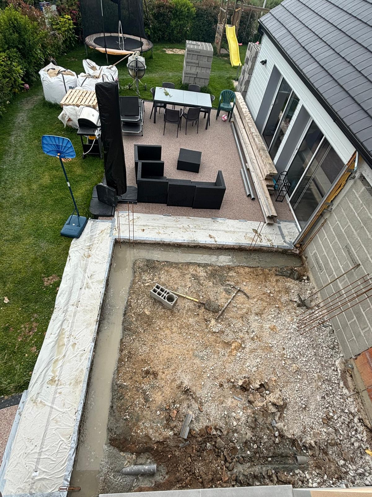 Le chantier s’est terminé par le coulage de la dalle, offrant une surface plane, stable et durable, prête à accueillir les futurs aménagements.