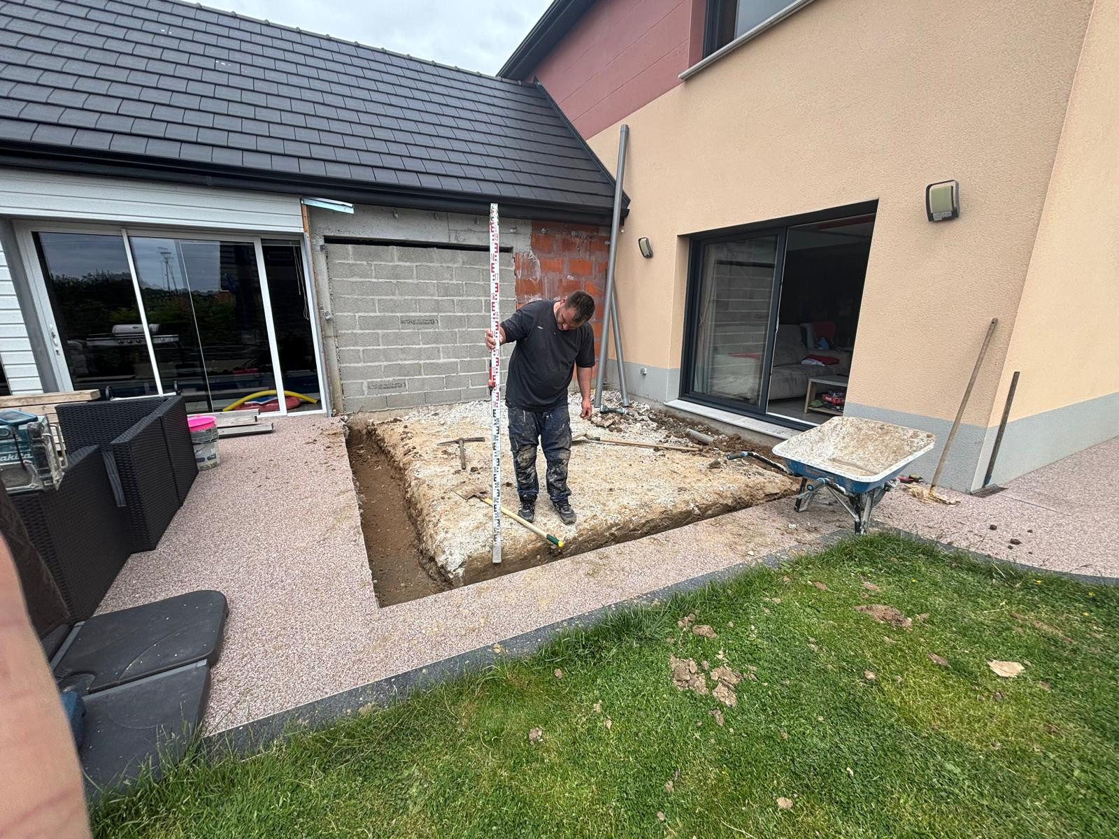 Dans le cadre de ce projet d’agrandissement de maison côté terrasse, à proximité du Havre, LS’G BATI a réalisé l’ensemble des travaux de gros œuvre, depuis la préparation du bâti existant jusqu’au coulage de la dalle, en assurant une parfaite continuité entre l’extension et la maison existante.